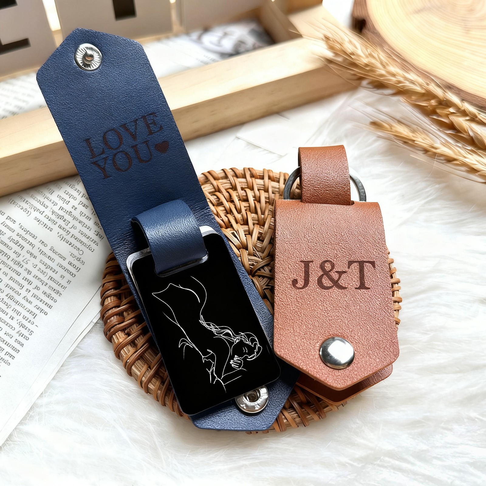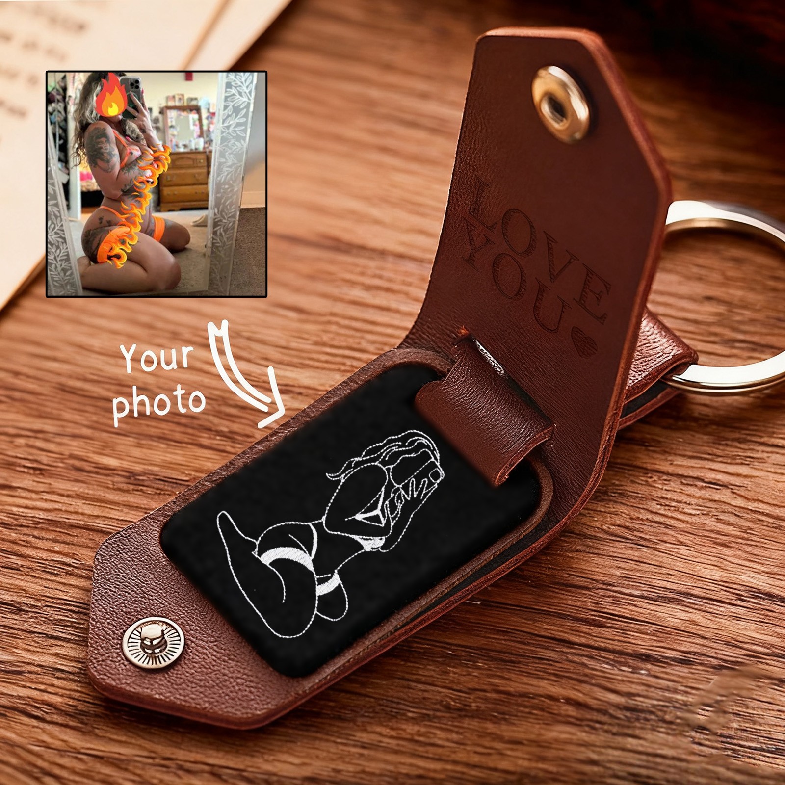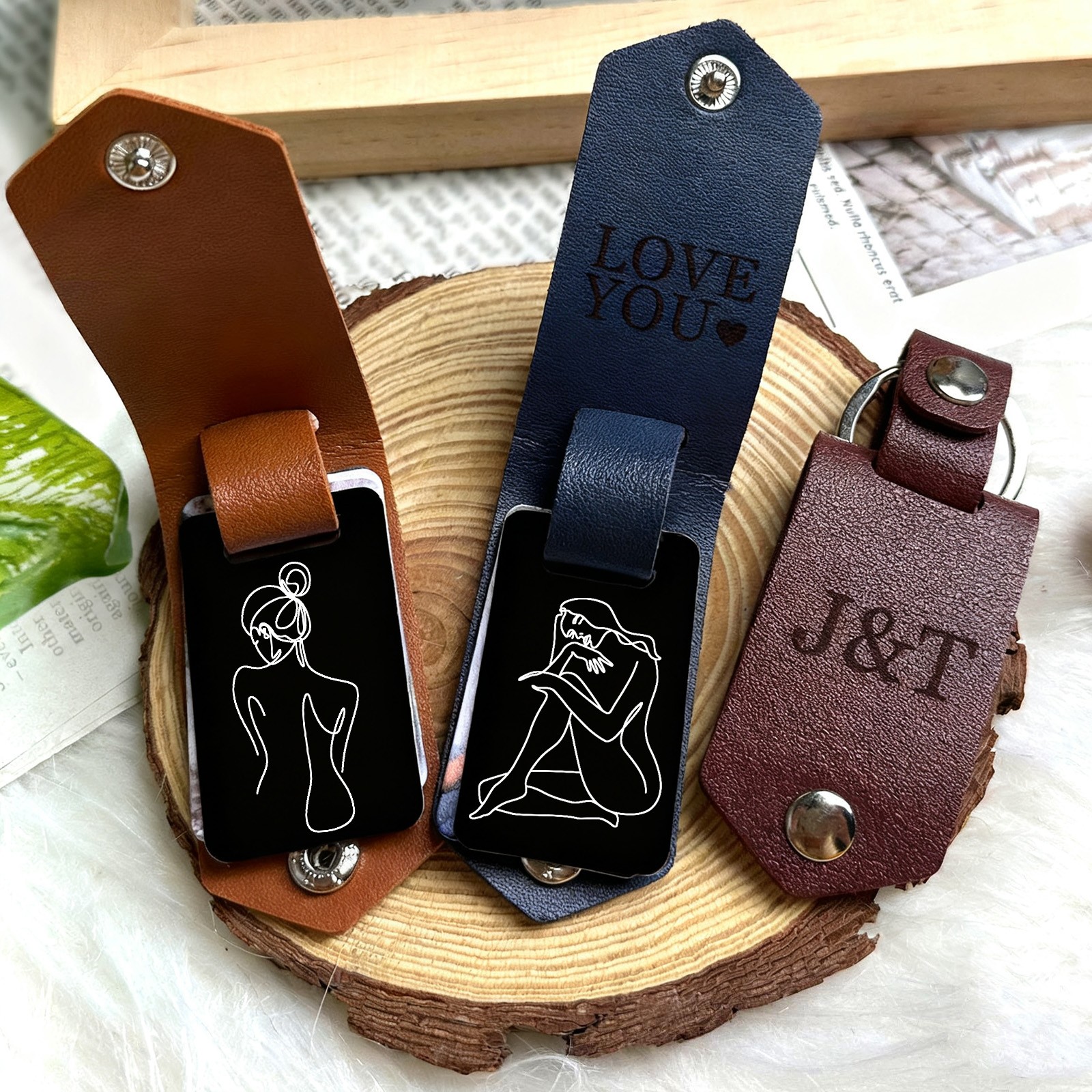 Custom Leather Keychain for Couples with Three Spicy Photos and Dates