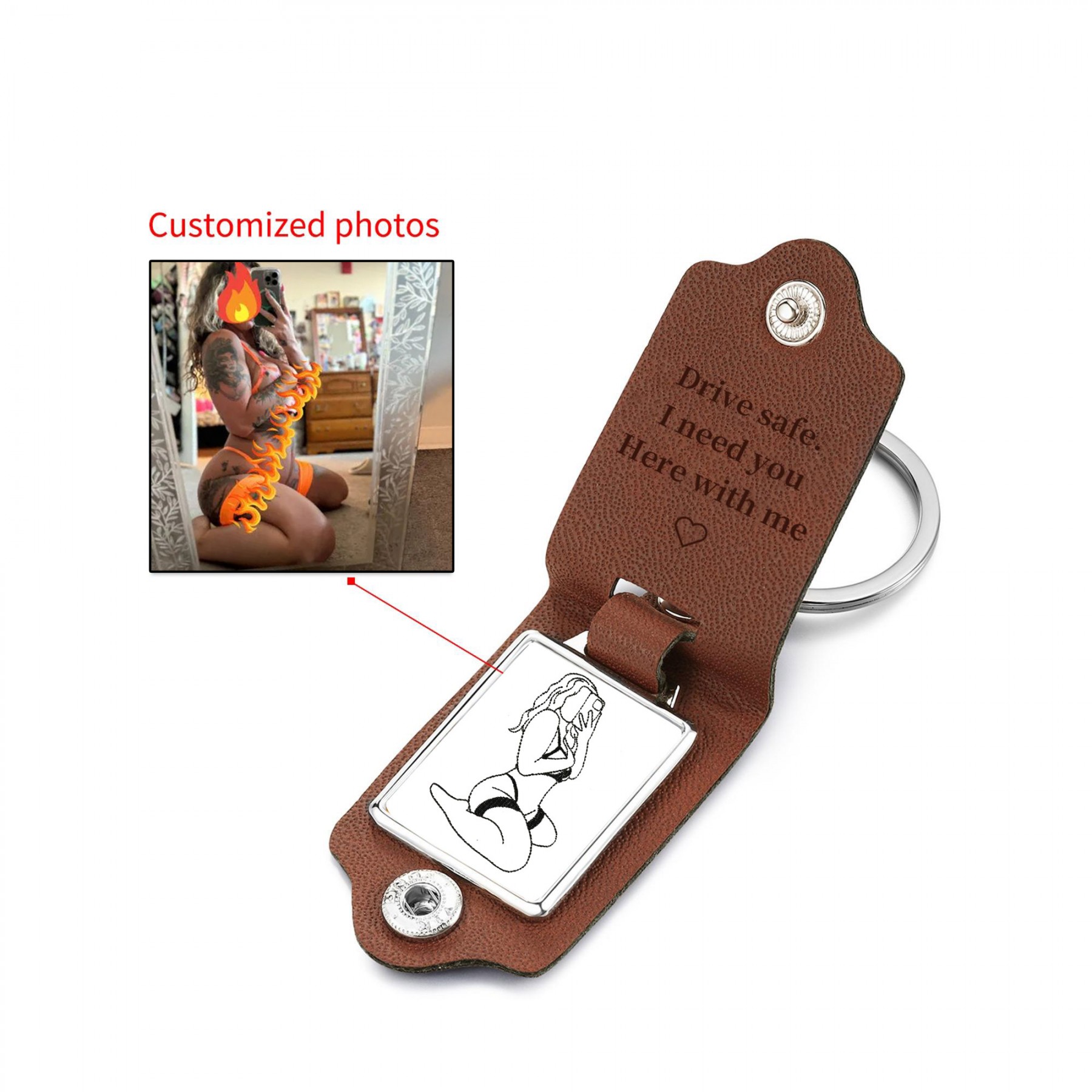 Custom Leather Keychain Set for Couples with Spicy Photo