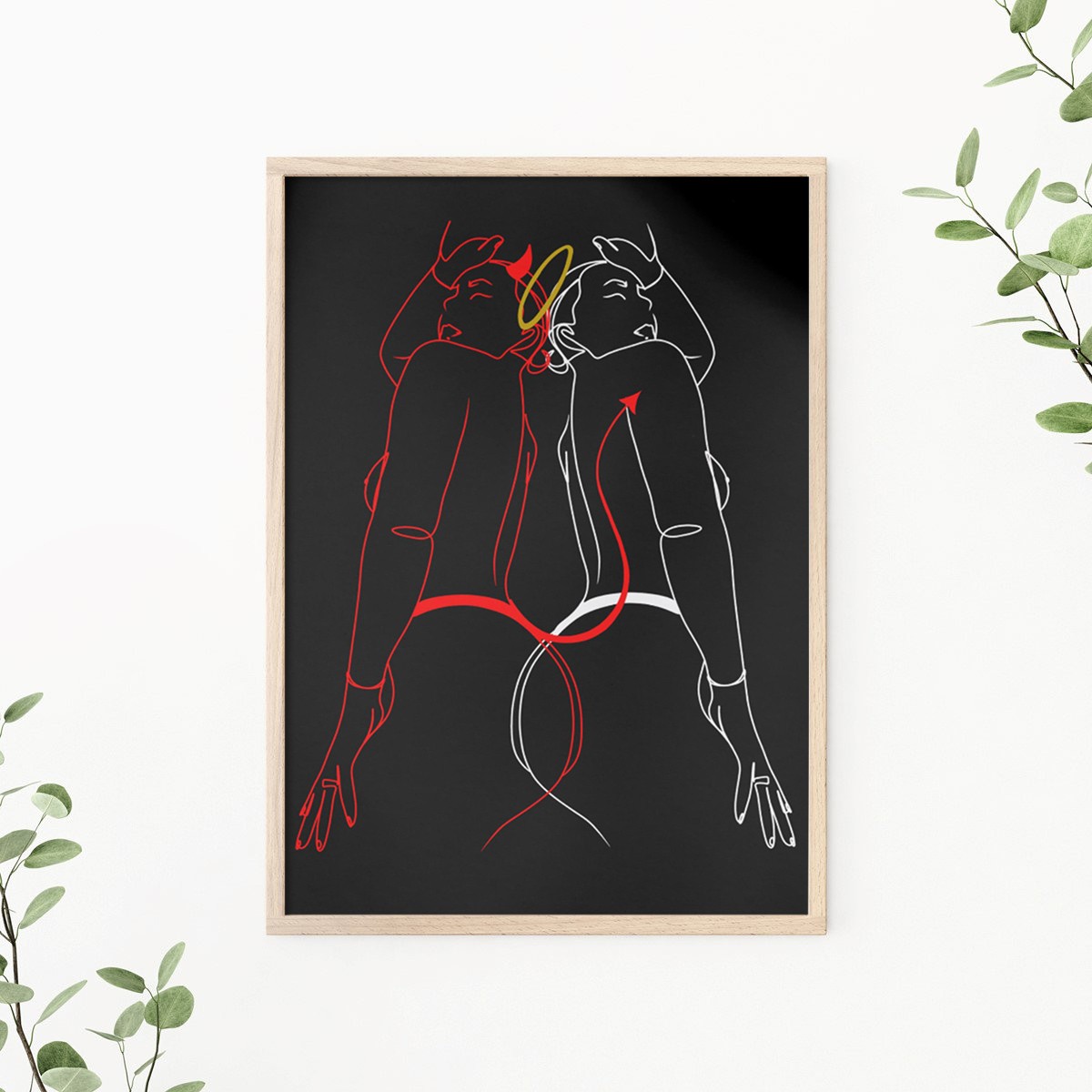 Custom Spicy Intimate Line Portrait Wall Art Home Decor for Your Lover