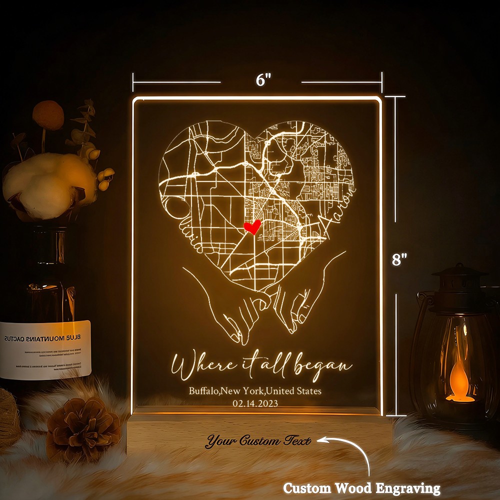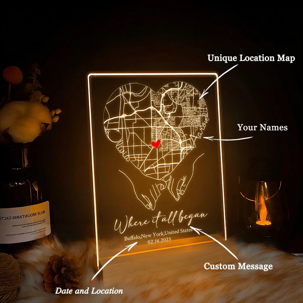 Custom Where It All Began Acrylic Map Night Light for Couple