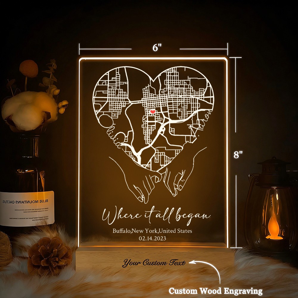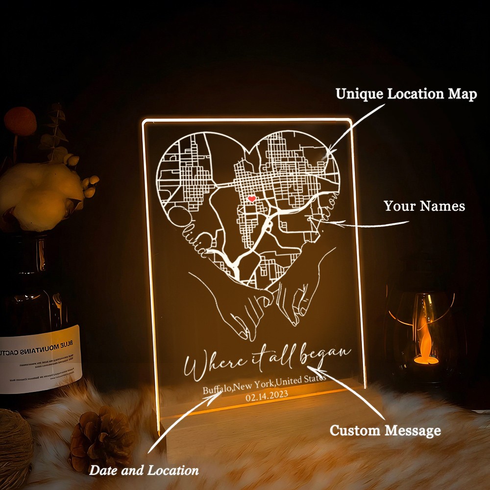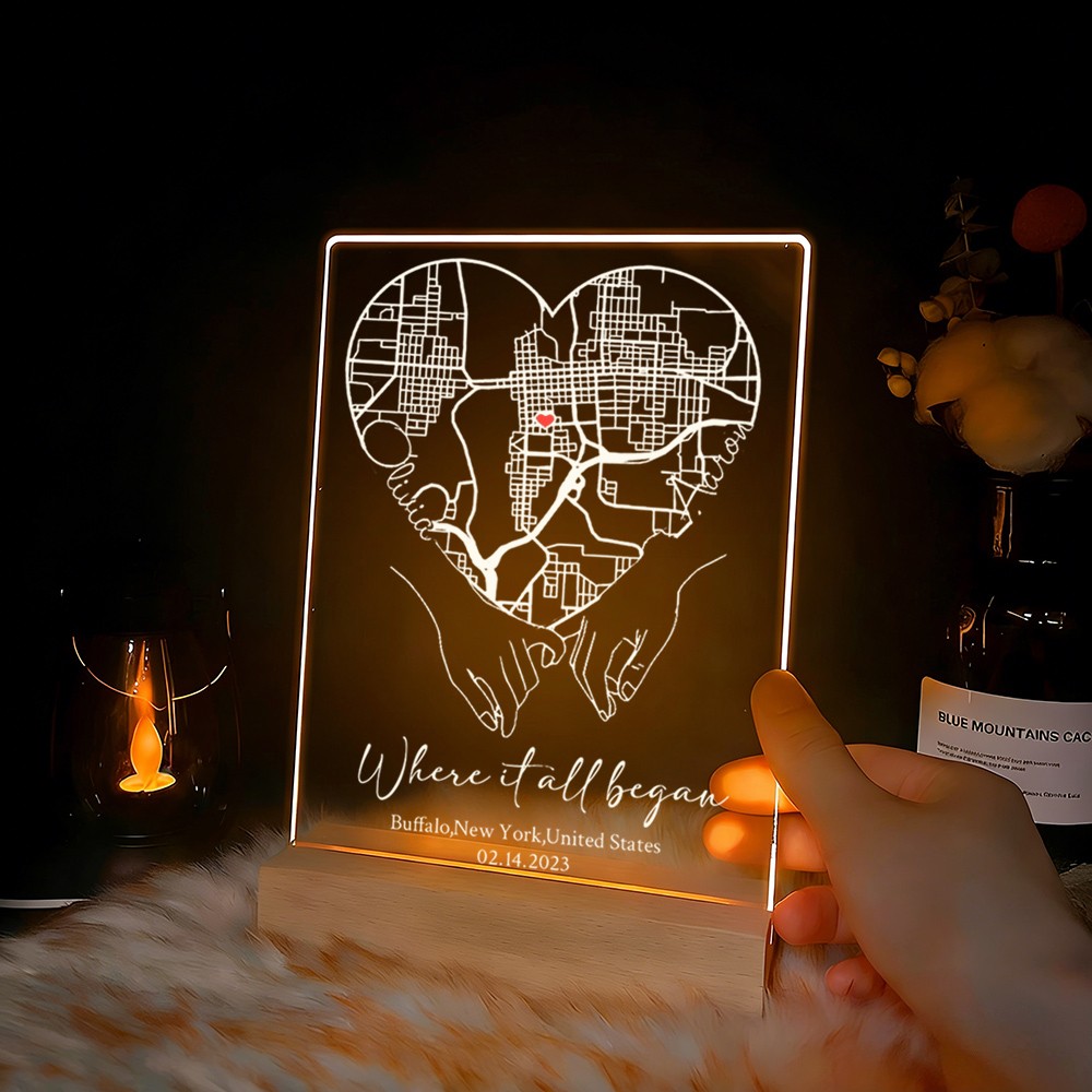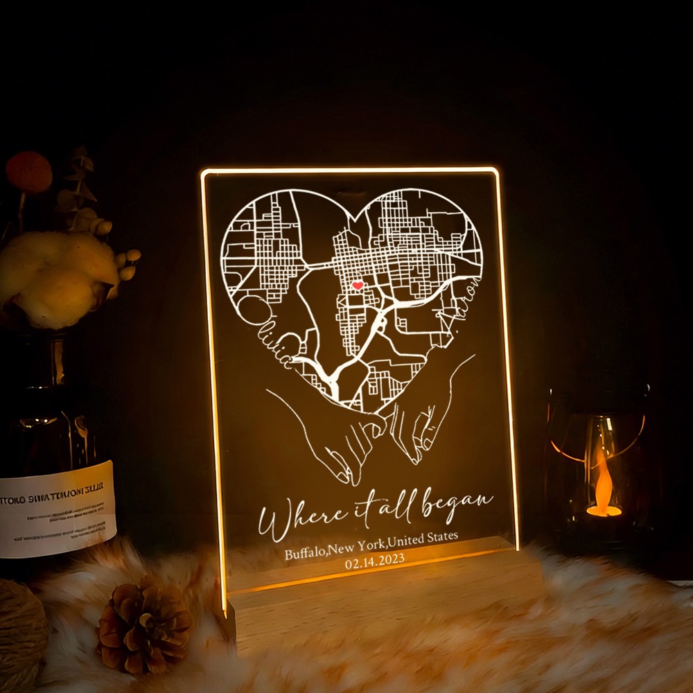 Custom Where It All Began Acrylic Map Night Light for Couple