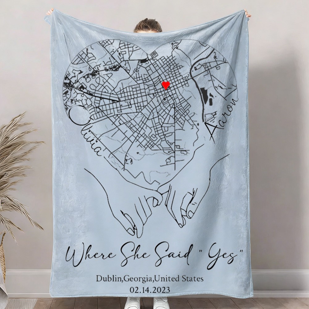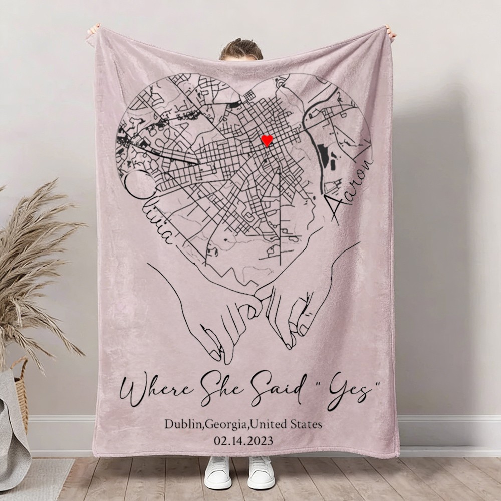 Custom Where She Said Yes Love City Map Blanket for Couple