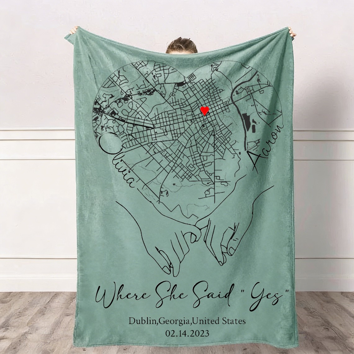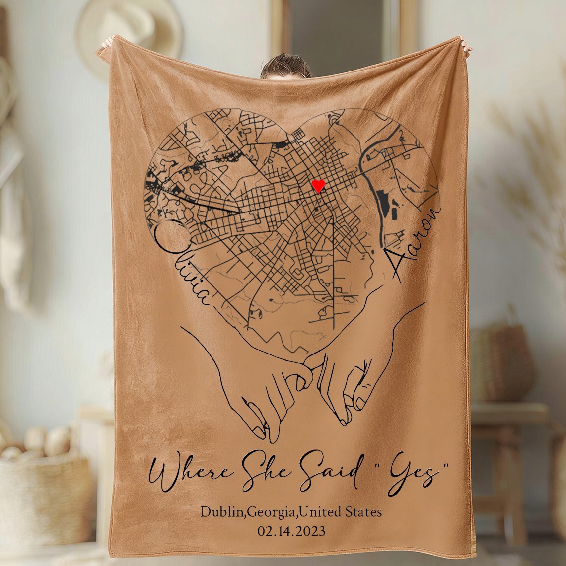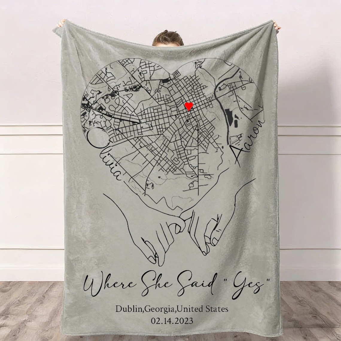 Custom Where She Said Yes Love City Map Blanket for Couple is a personalized keepsake designed to celebrate the place where your love story began. Customize the blanket with a meaningful city map, coordinates, names, and a special date to create a timeless and heartfelt gift for couples, anniversaries, weddings, or Valentine’s Day.