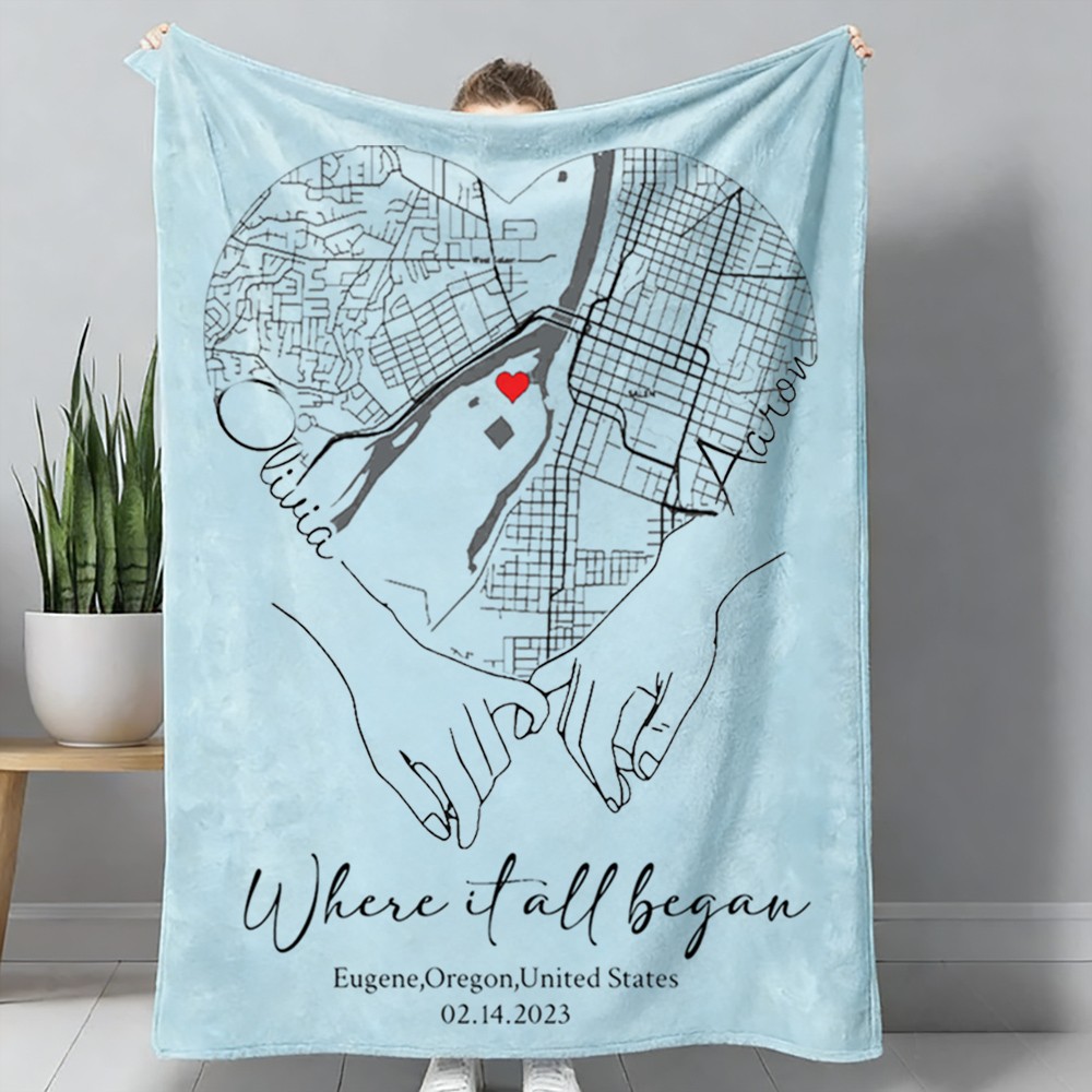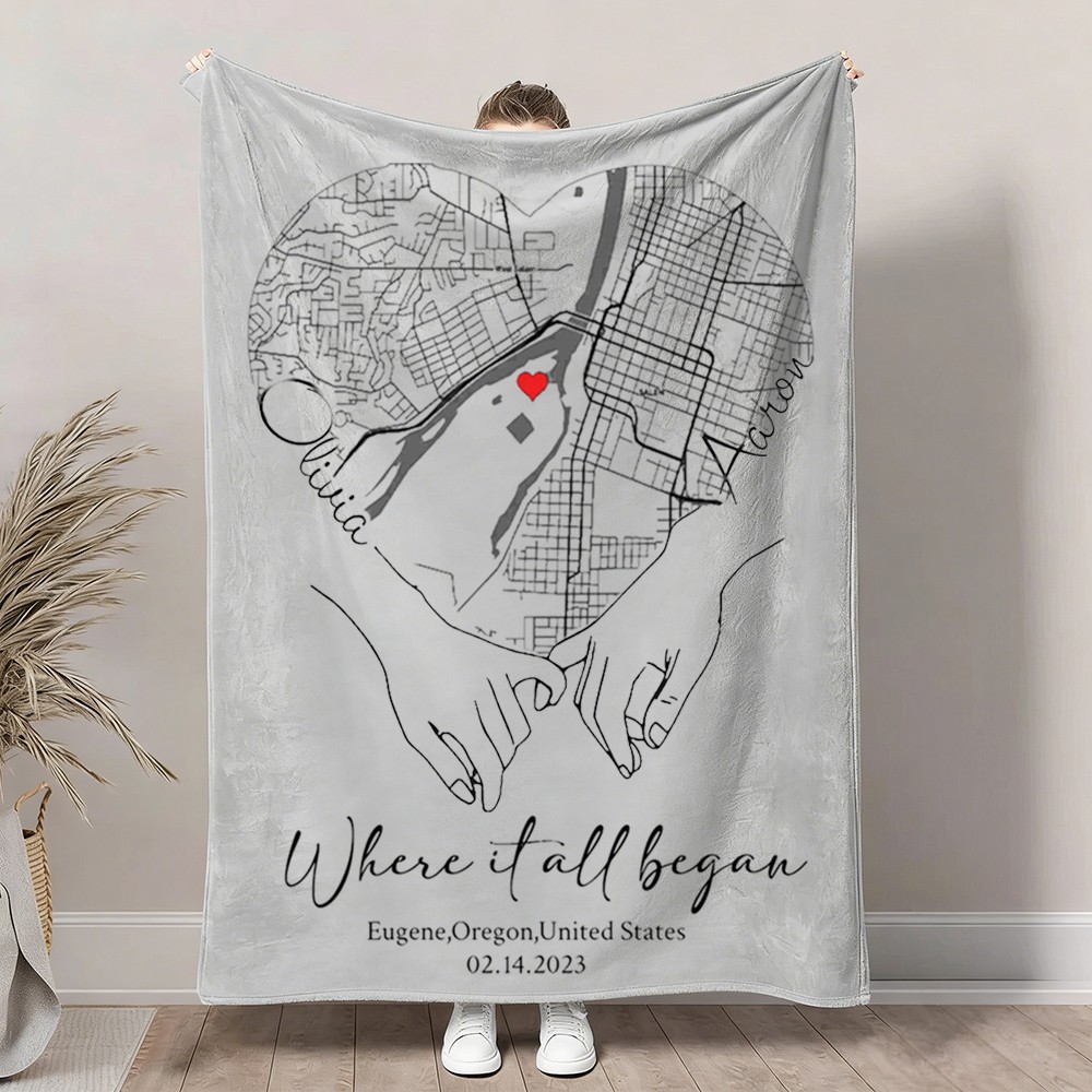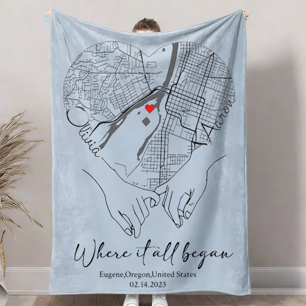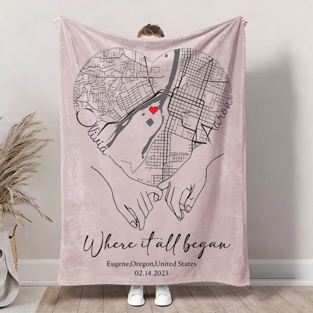 Custom Where It All Began Love City Map Blanket for Couple