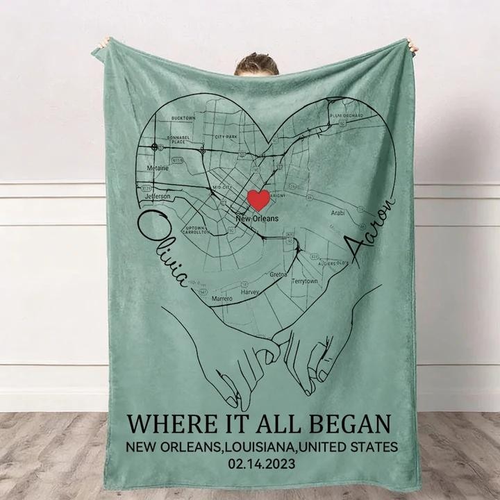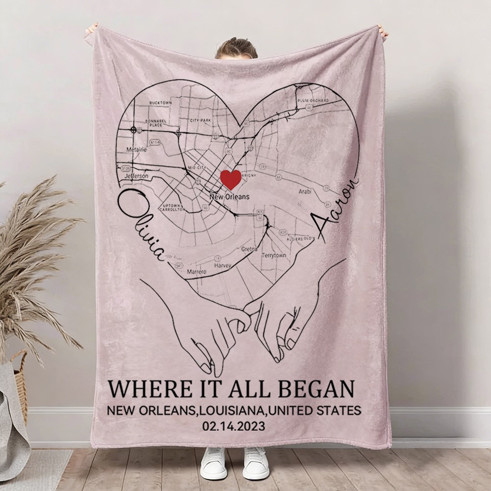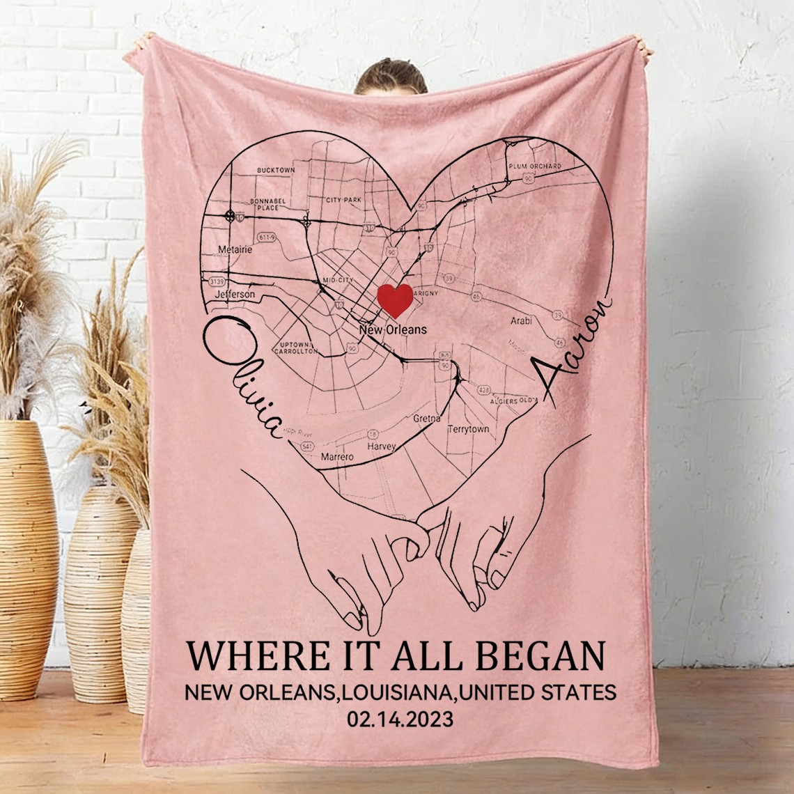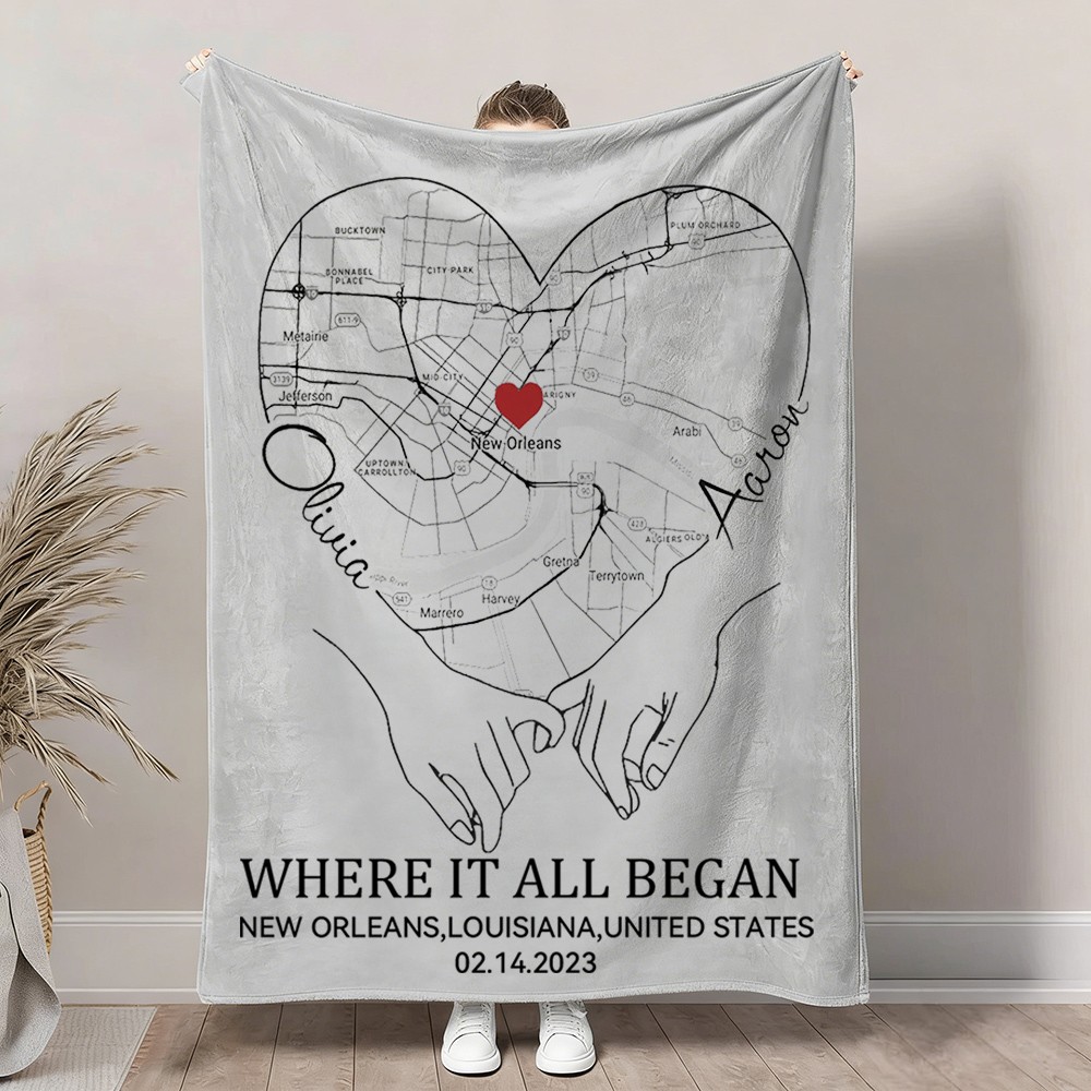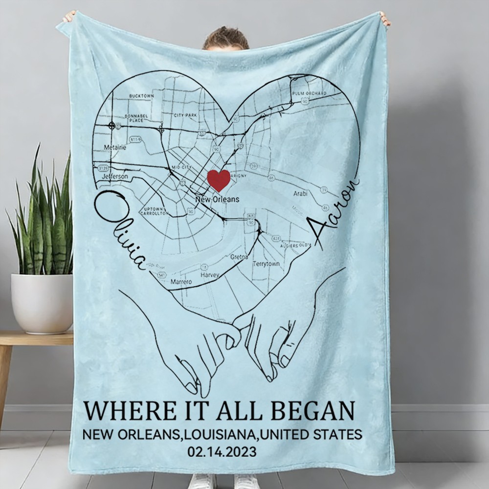 Custom Where It All Began Love City Map Blanket for Couple is a personalized keepsake designed to celebrate the place where your love story began. Customize the blanket with a meaningful city map, coordinates, names, and a special date to create a timeless and heartfelt gift for couples, anniversaries, weddings, or Valentine’s Day.
