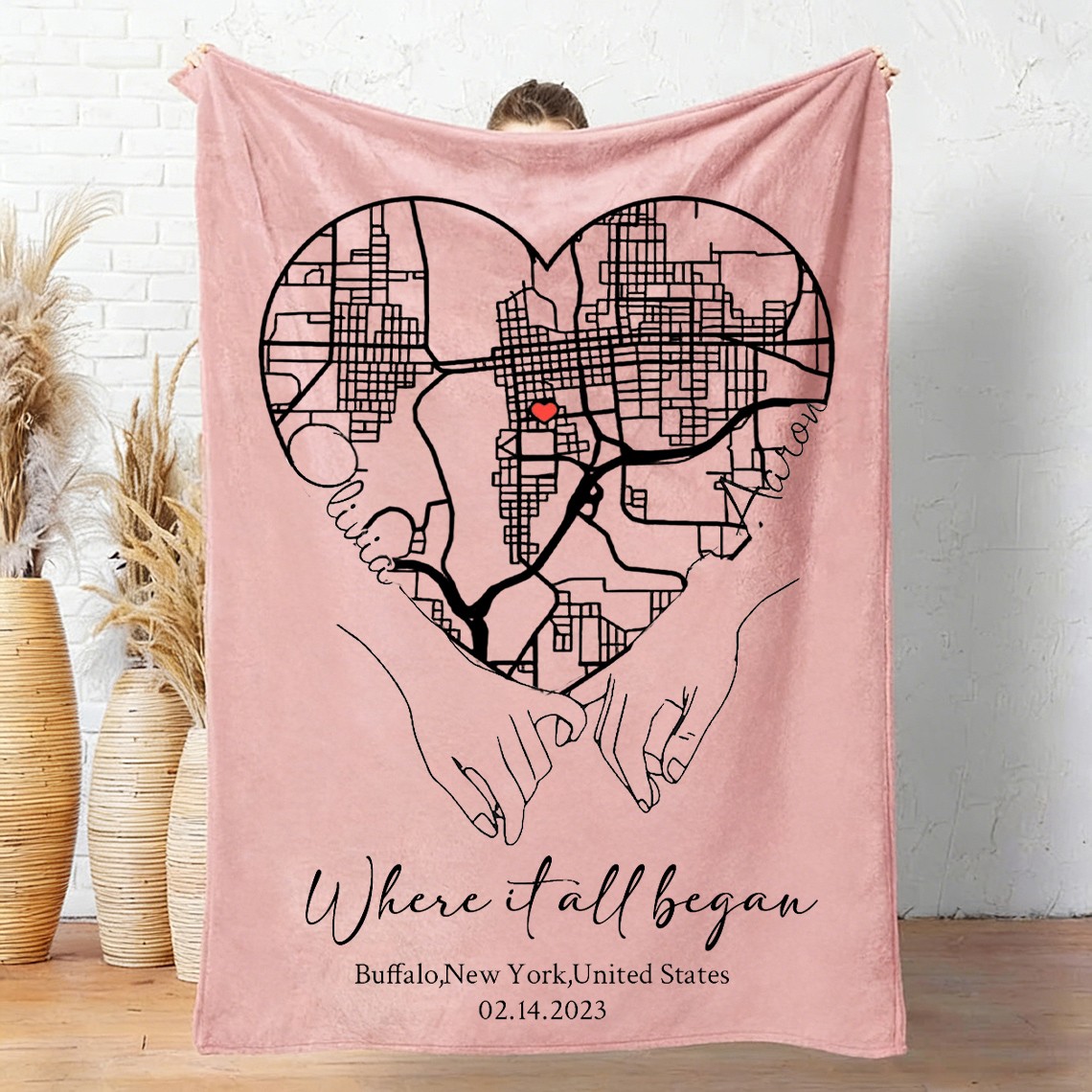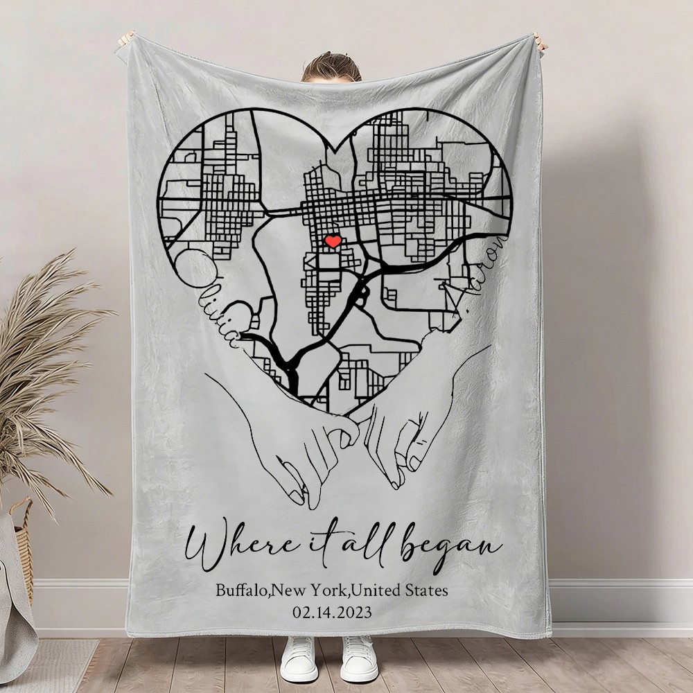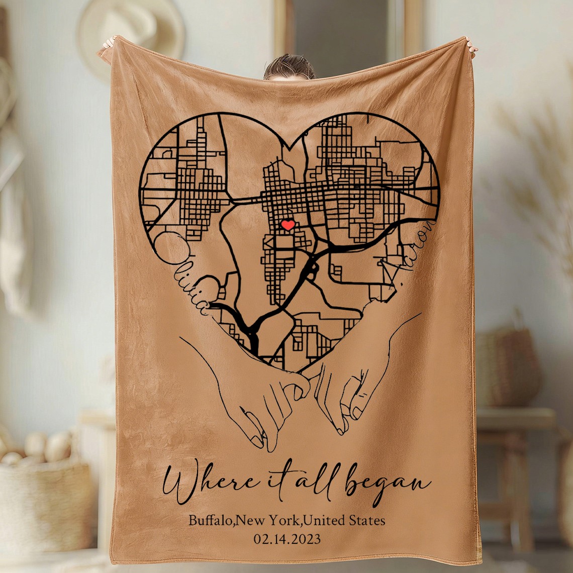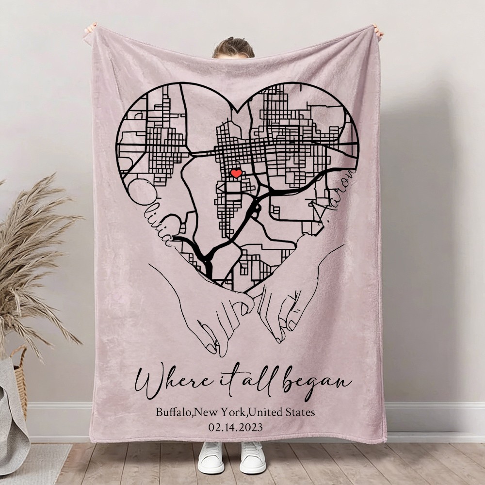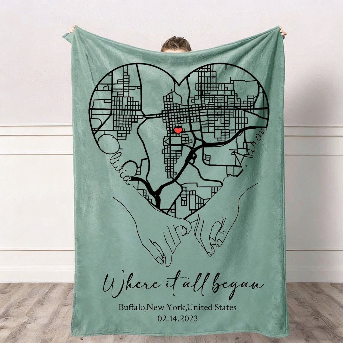Custom Where It All Began Love City Map Blanket for Couple is a personalized keepsake designed to celebrate the place where your love story began. Customize the blanket with a meaningful city map, coordinates, names, and a special date to create a timeless and heartfelt gift for couples, anniversaries, weddings, or Valentine’s Day.