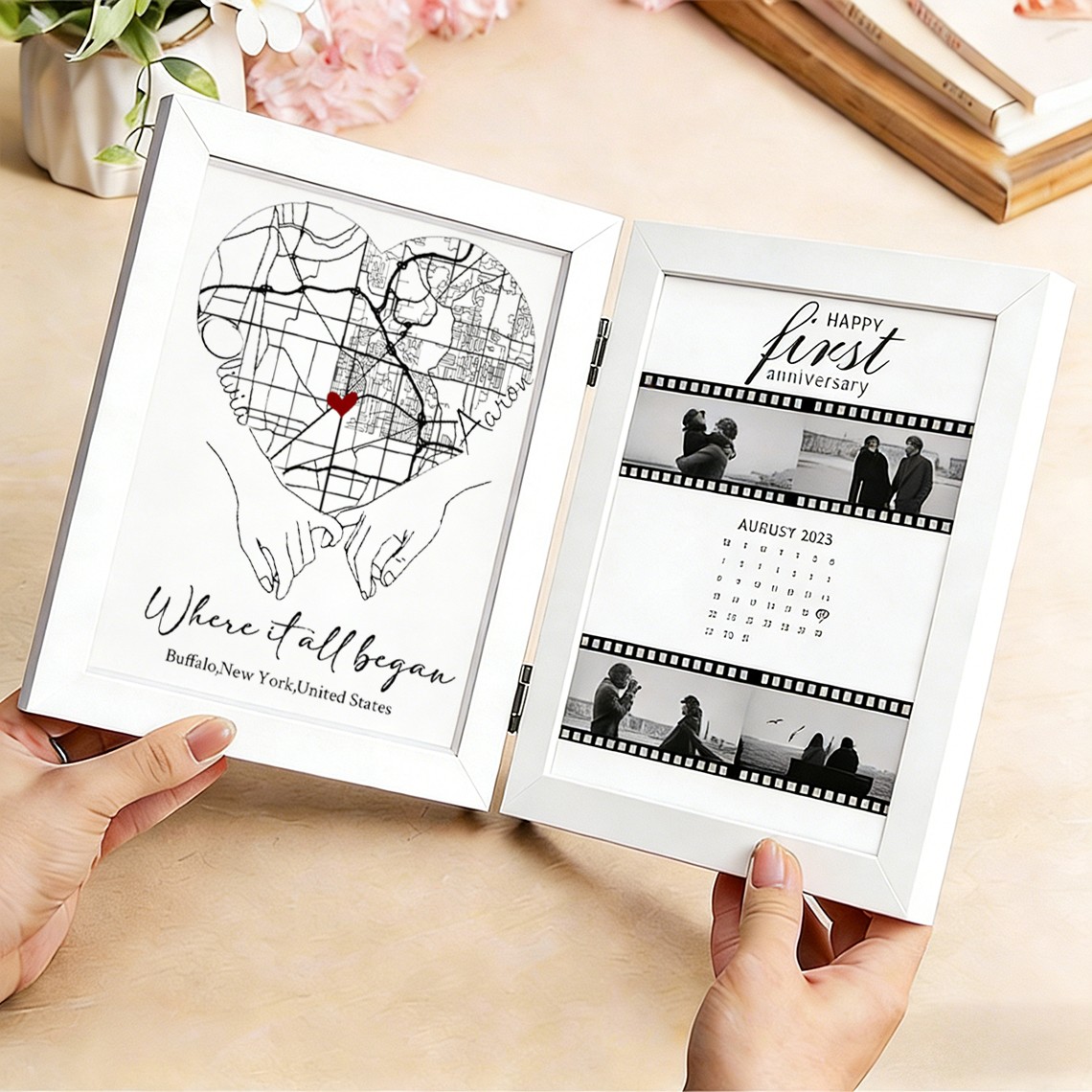 Custom Where It All Began Wooden Anniversary Frame Box for Couple