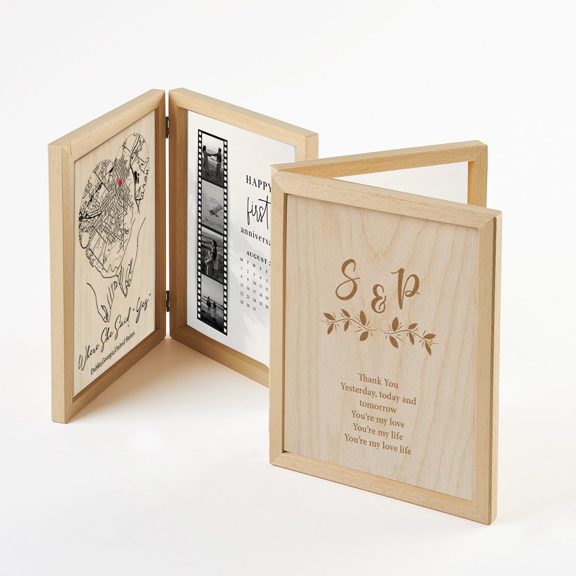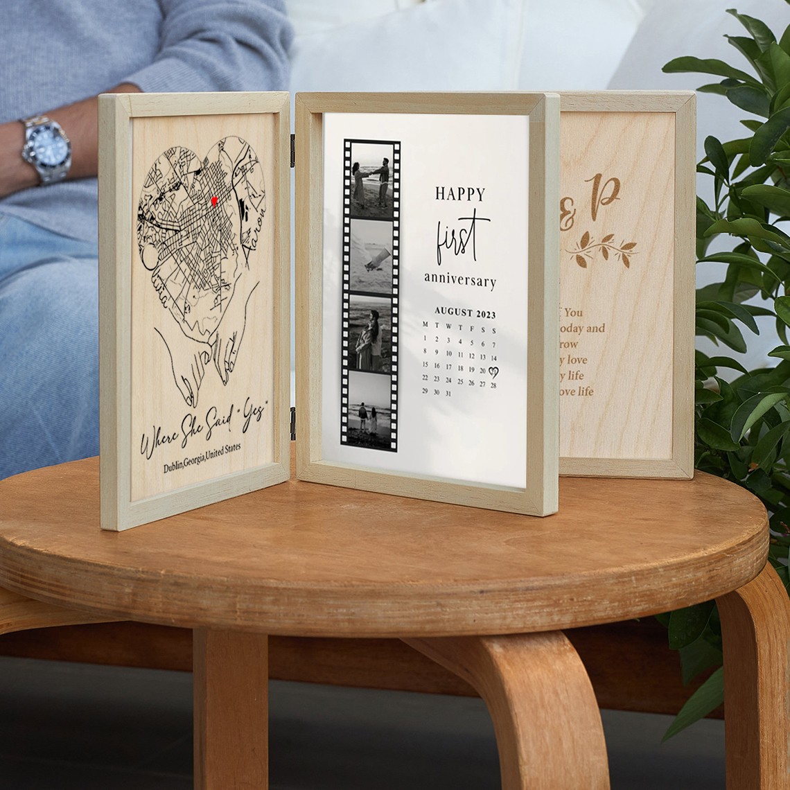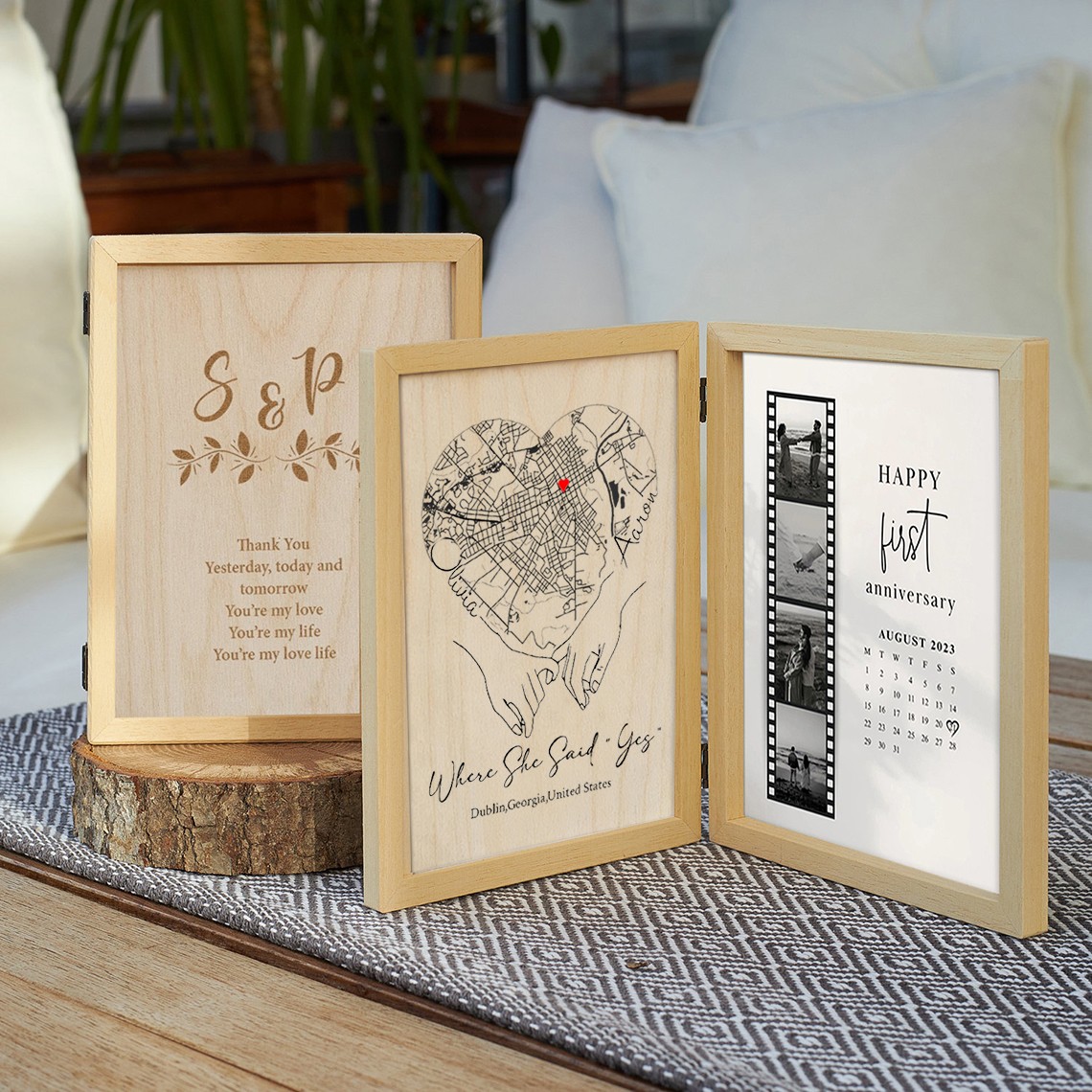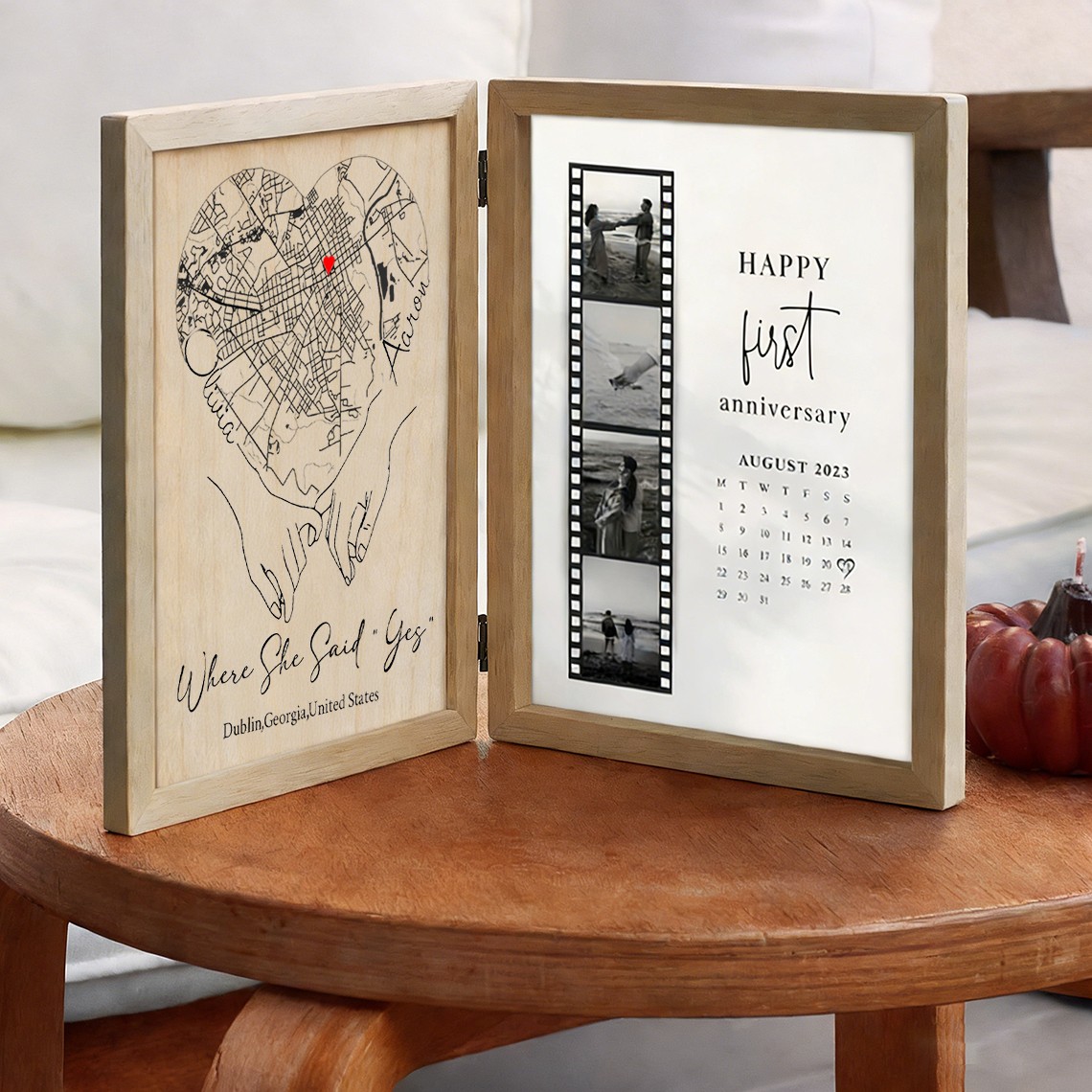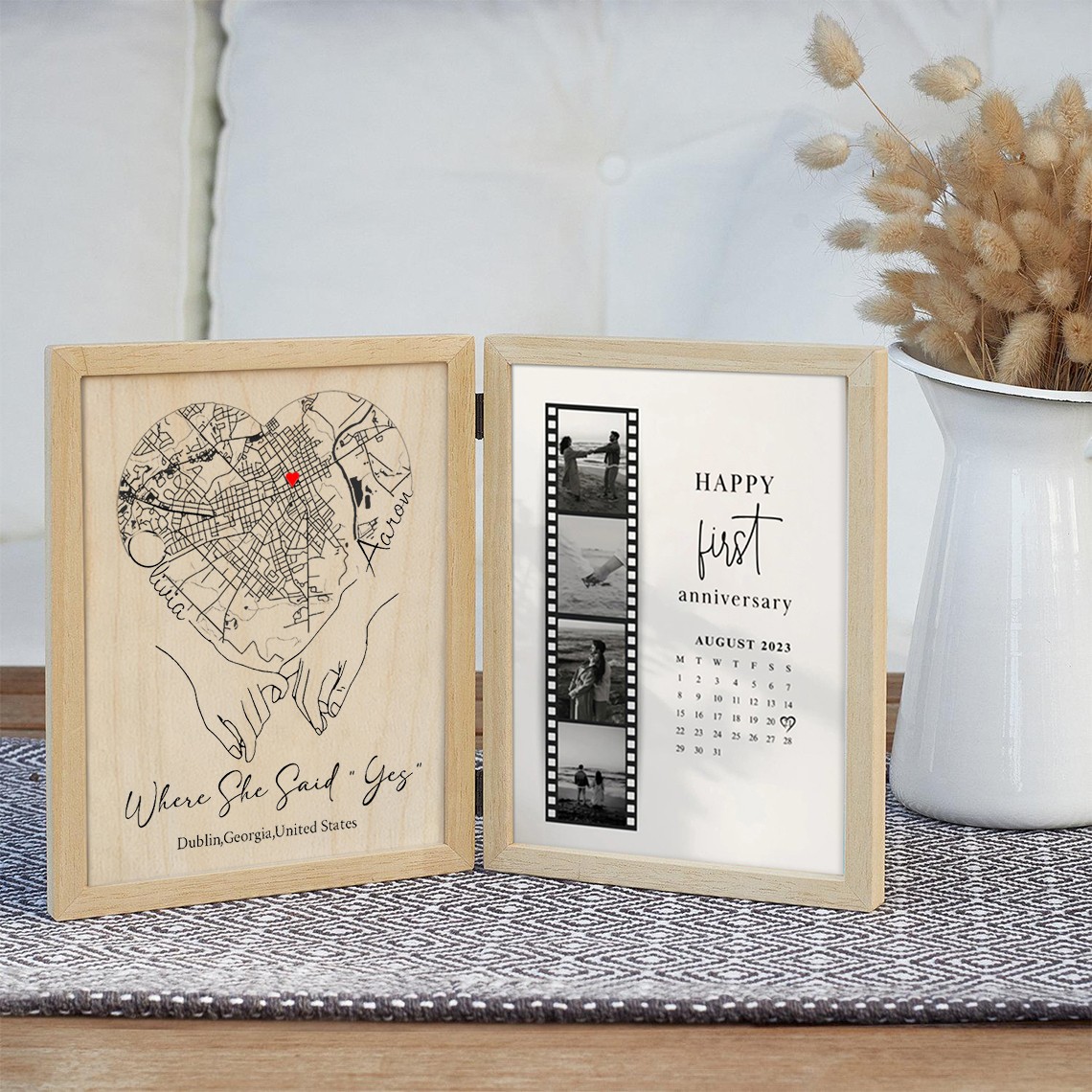Custom Where She Said Yes Wooden Anniversary Frame Box for Couple