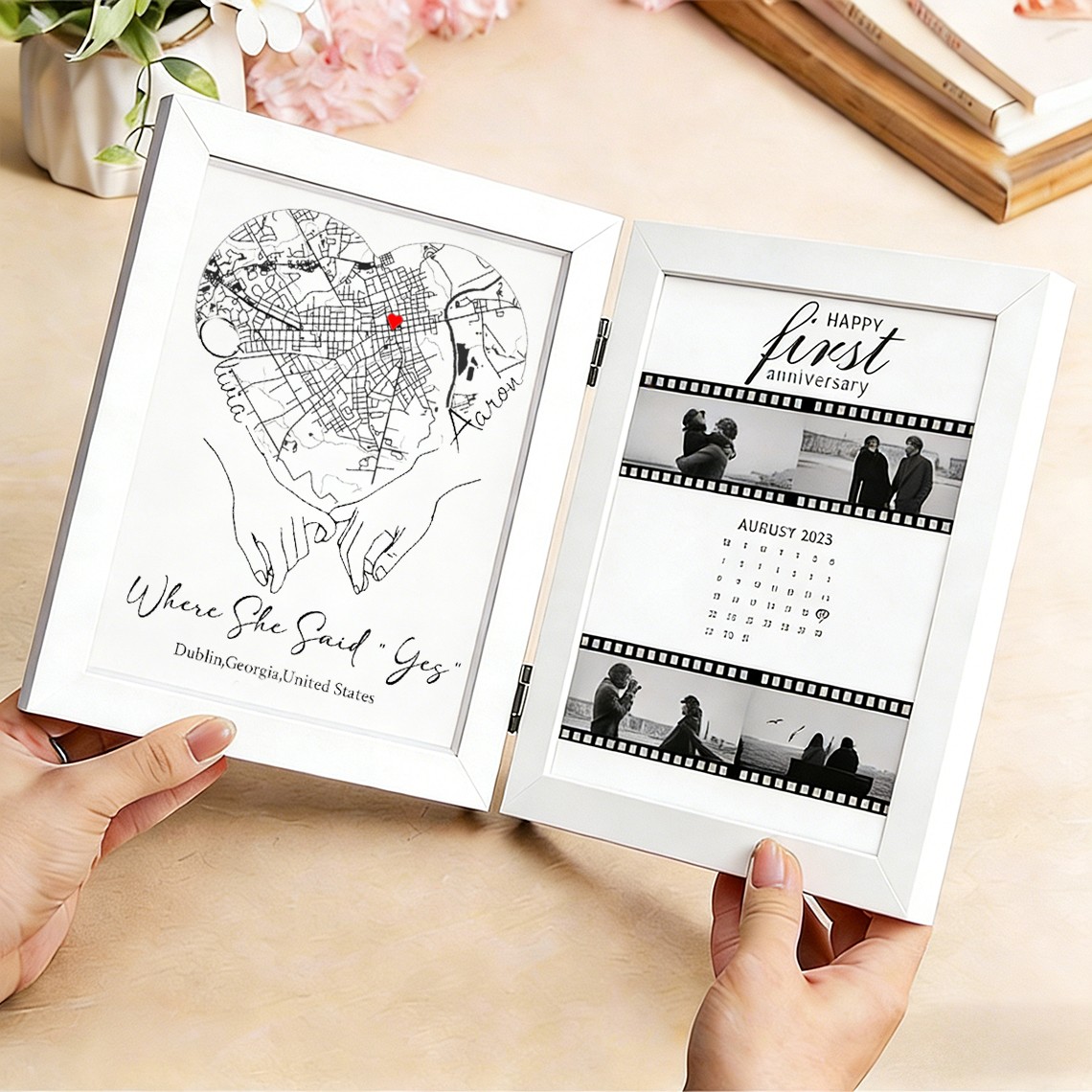 Custom Where She Said Yes Wooden Anniversary Frame Box for Couple
