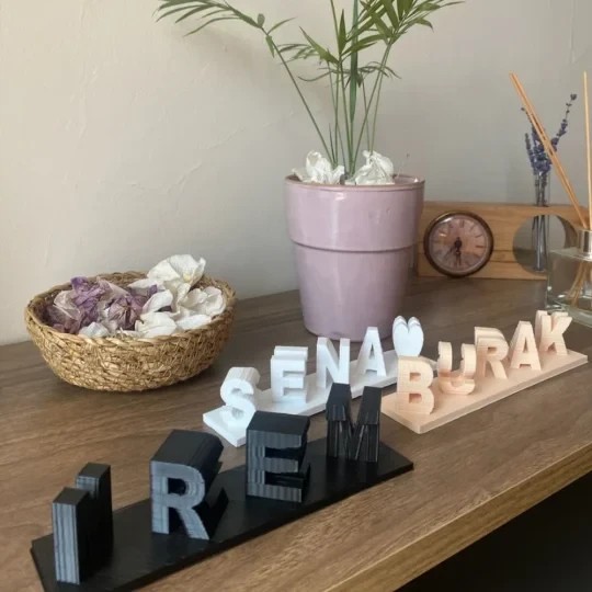 Personalized 3D Printed Name Art,Where Your Name Becomes a Unique Masterpiece. This product is a unique name logo. By entering two names, they can be cleverly combined into one, presented on both sides, symbolizing the love and warmth that accompany each other.