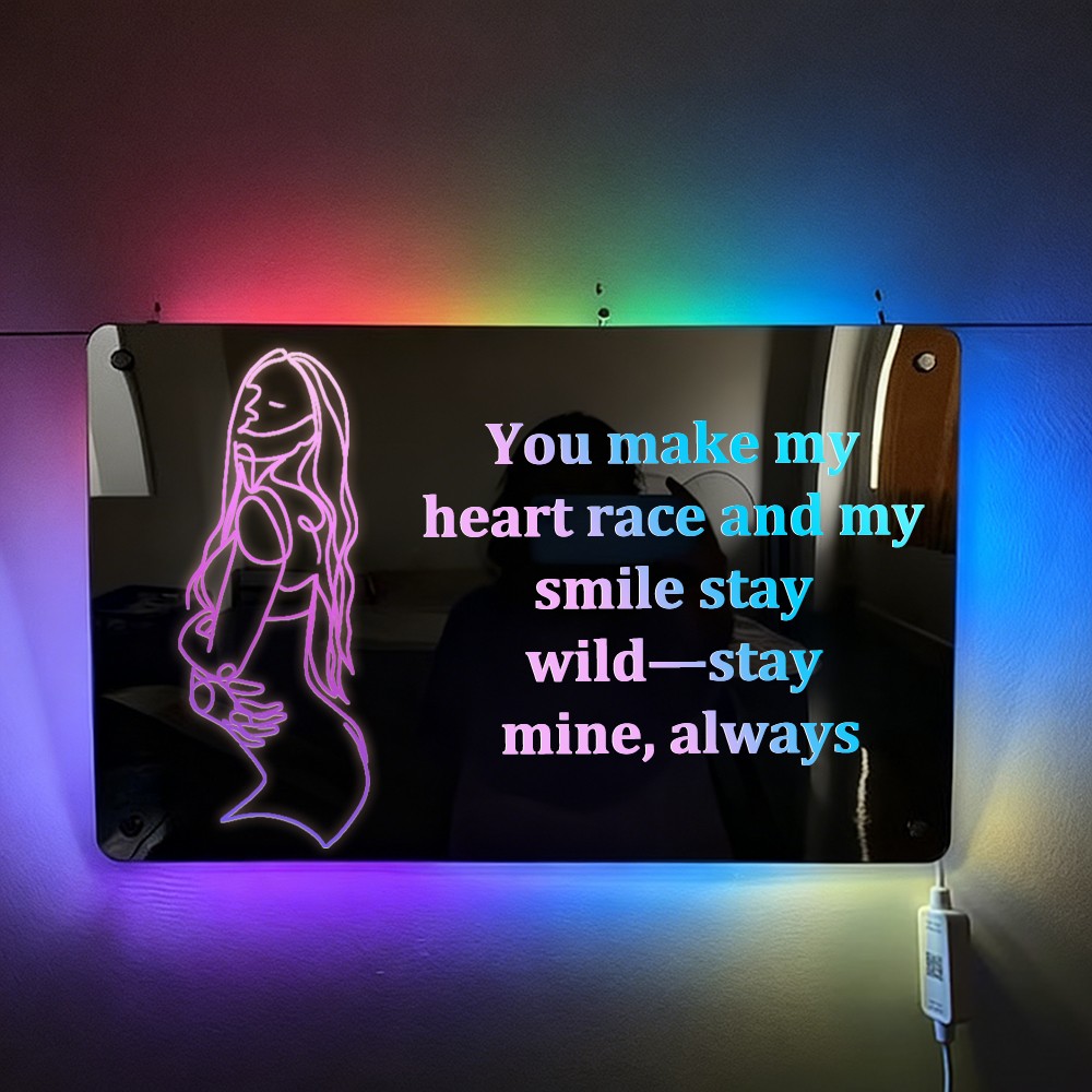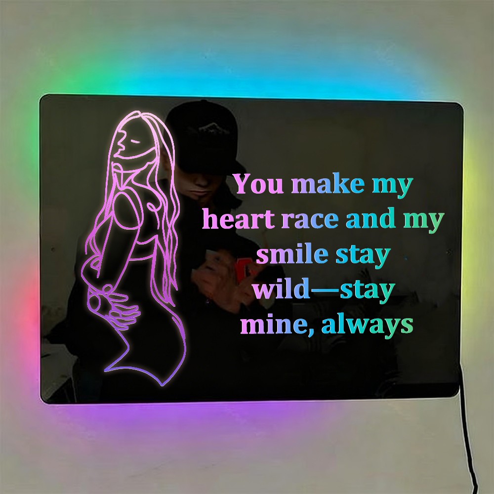 Personalized Spicy Line Art Portrait Mirror Lamp for Him/Her/You
