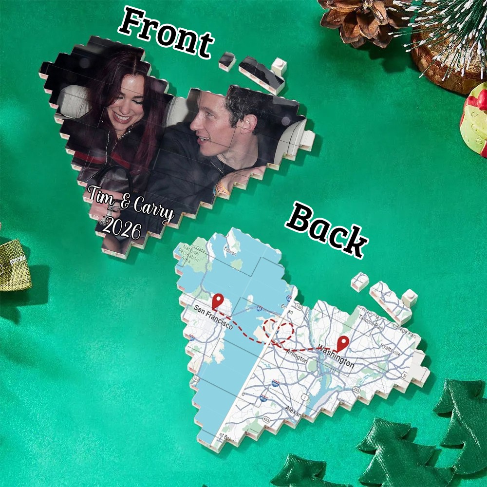 Personalized Two Halves of the Same Heart Map Print Building Brick Puzzle