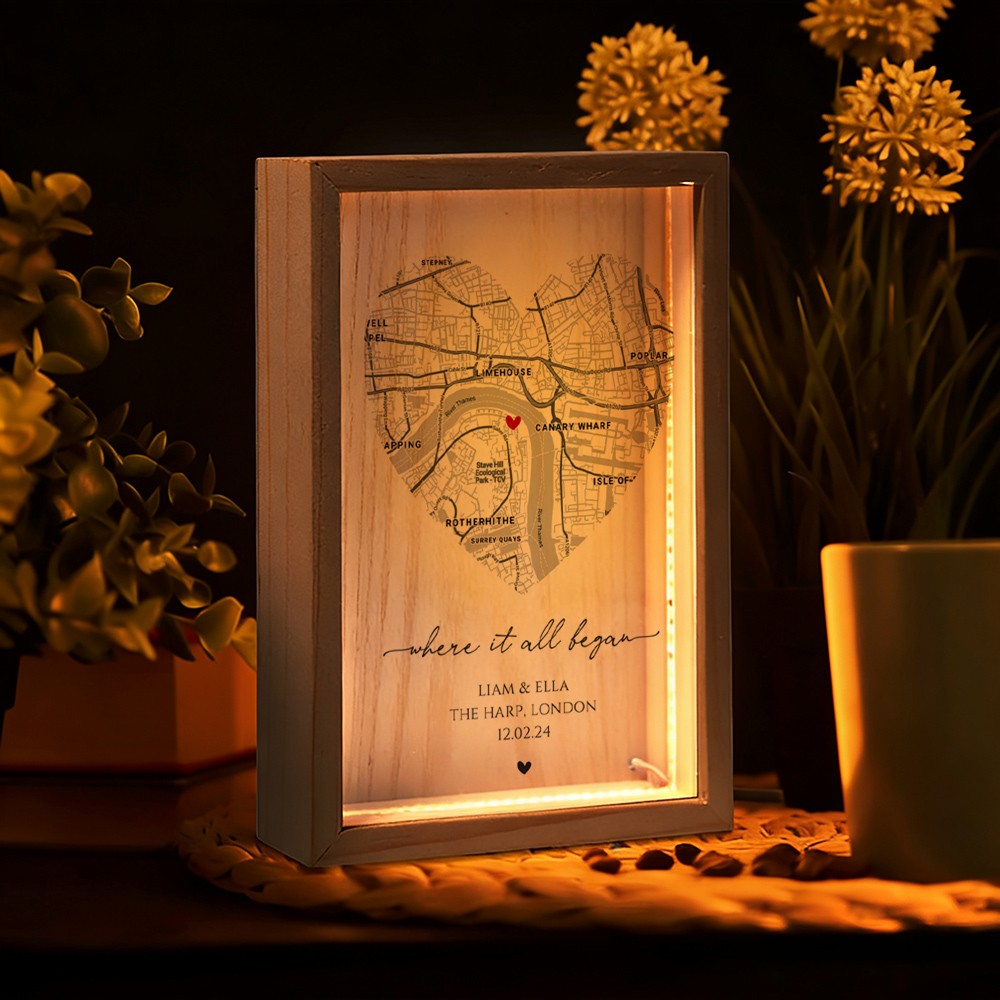 Personalized Where It All Began Map Light Box for Couple