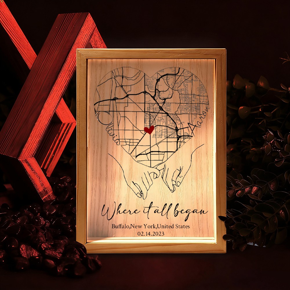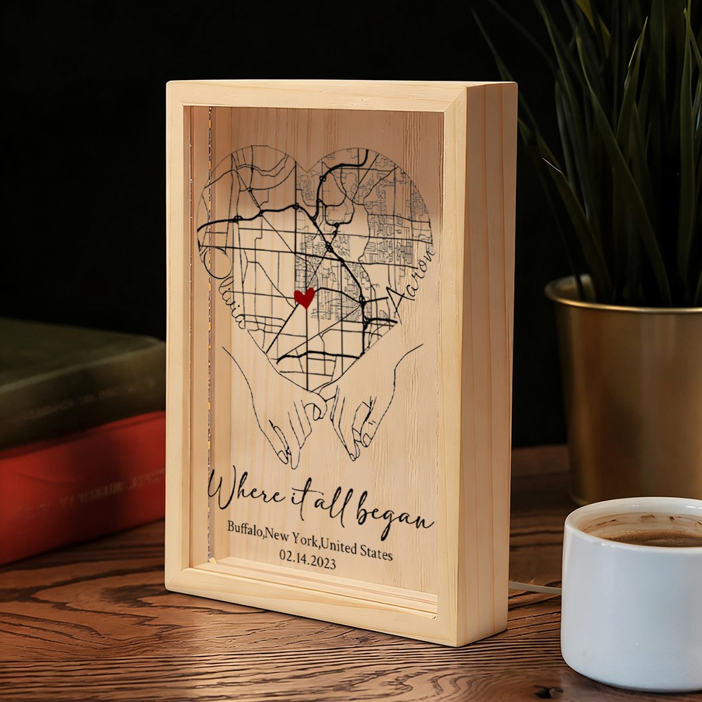 Personalized Where It All Began Map Light Box for Couple