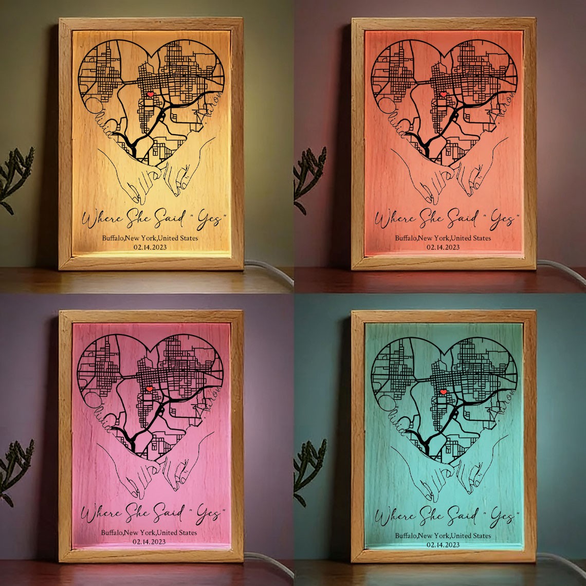 Personalized Where She Said Yes Map Light Box for Couple