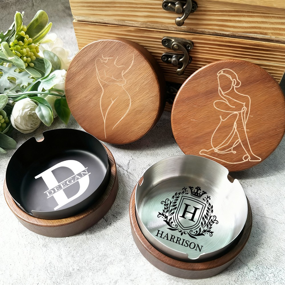 Personalized Wooden Vintage Ashtray With Spicy Portrait Gift For Valentine's Day