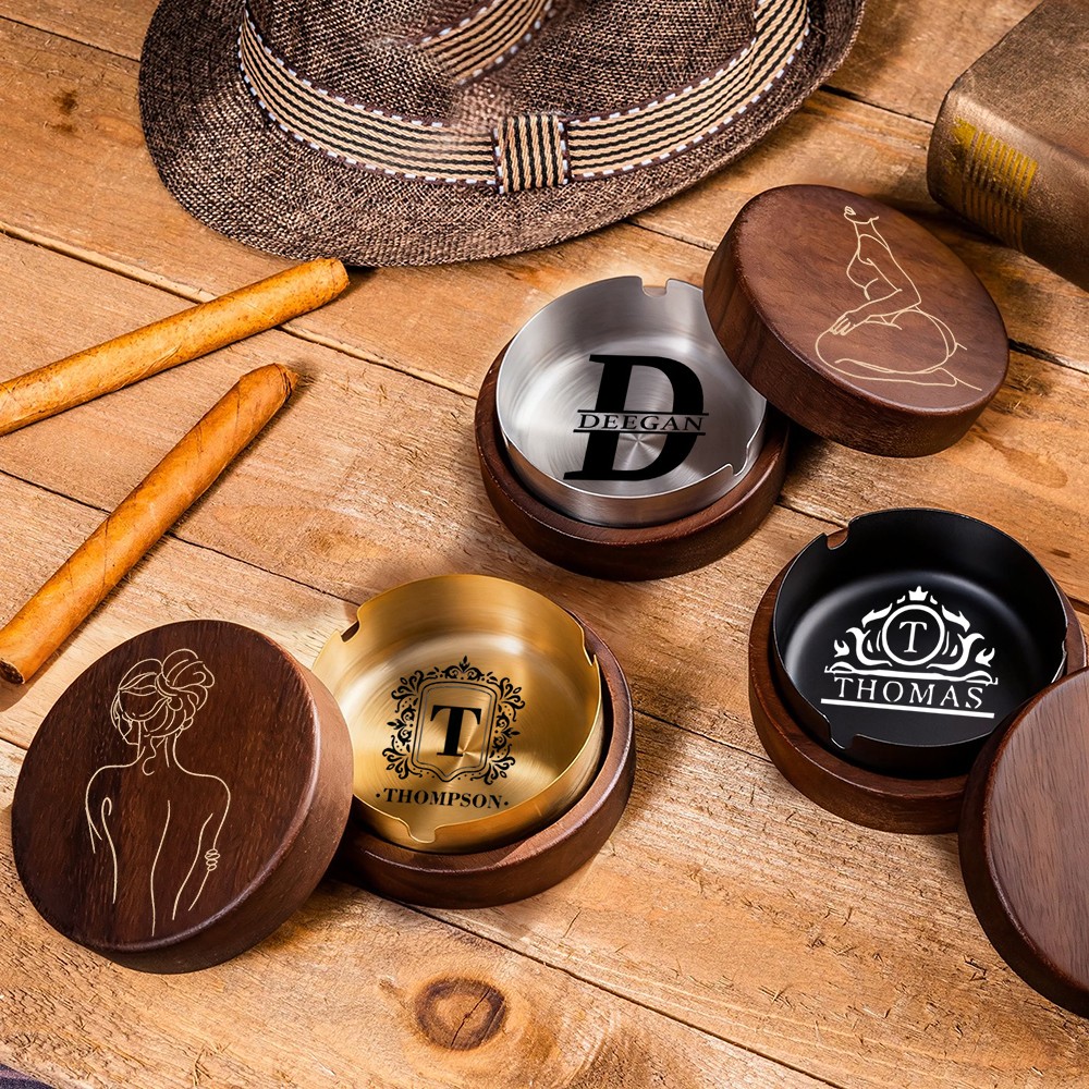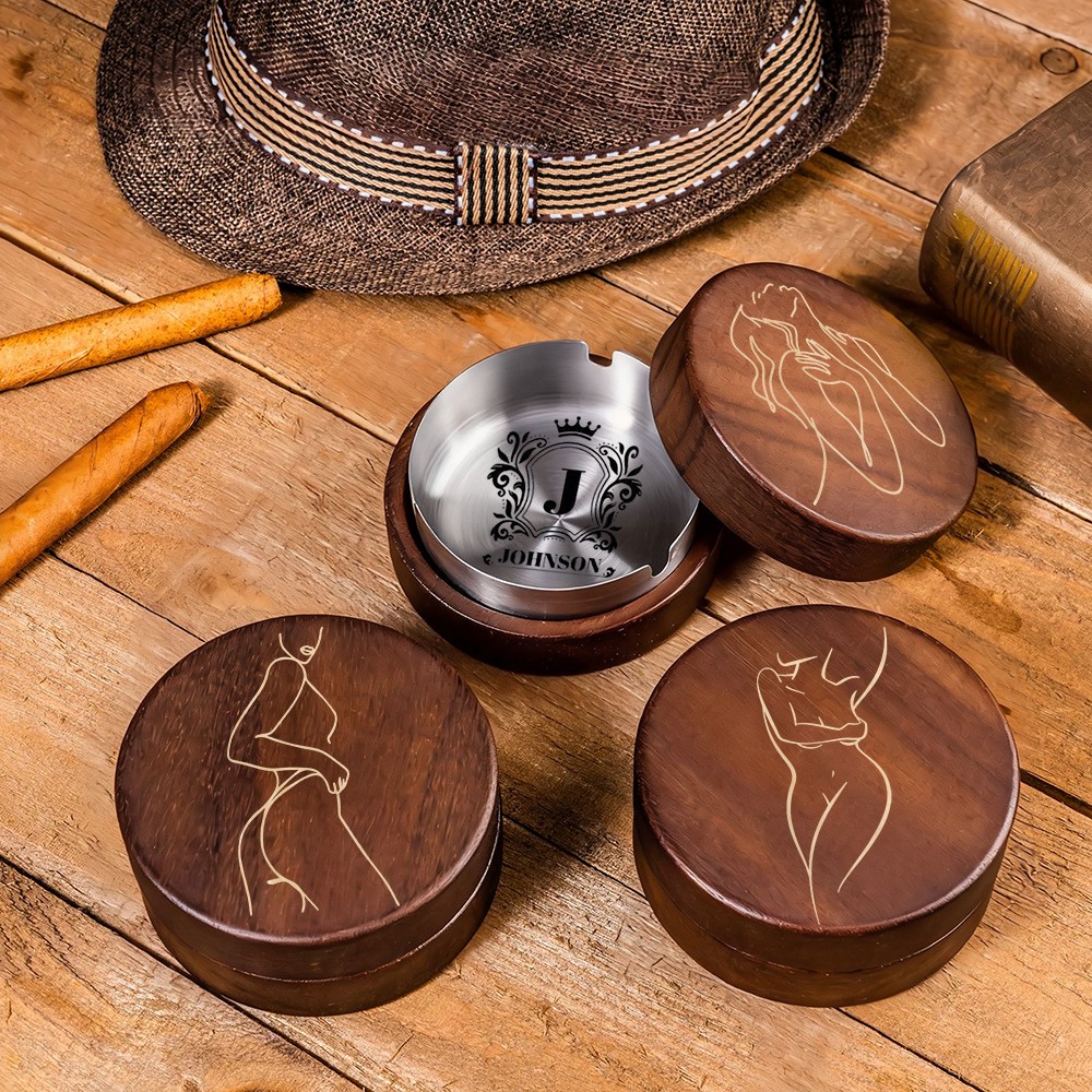 Personalized Wooden Vintage Ashtray With Spicy Portrait Gift For Valentine's Day