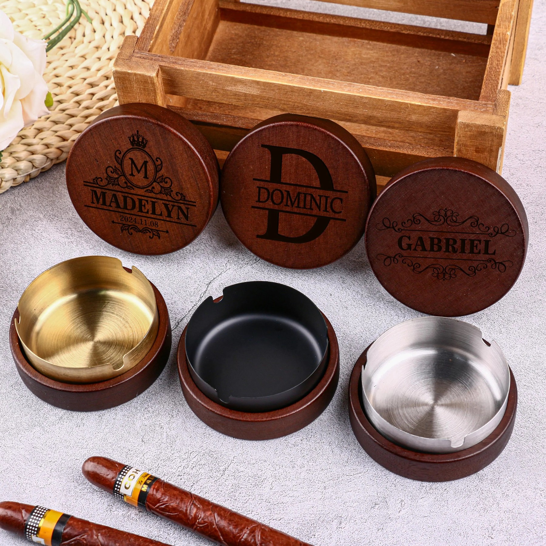 Personalized Wooden Vintage Ashtray With Spicy Portrait Gift For Valentine's Day