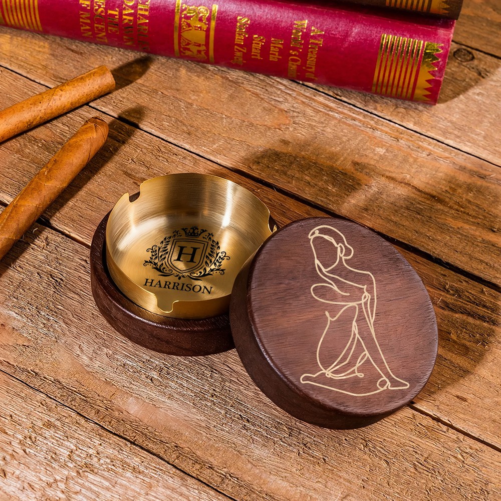 Personalized Wooden Vintage Ashtray With Spicy Portrait Gift For Valentine's Day